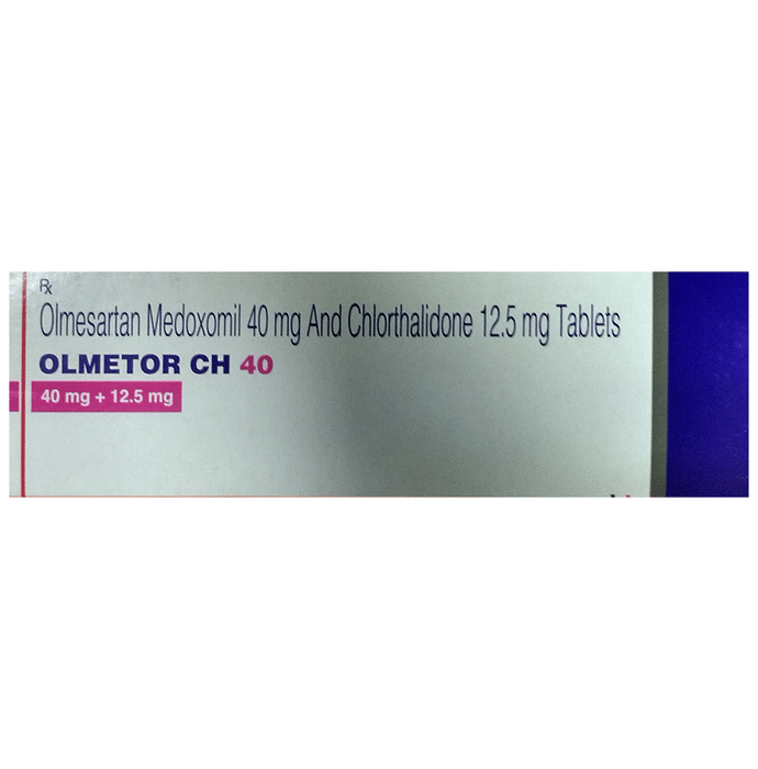 In Hypertension (high blood pressure) Olmetor CH 40 Tablet is a combination of two medicines namely Olmesartan and chlorthalidone. It is generally used when one medicine alone is not controlling your blood pressure effectively. Olmesartan works by relaxing and widening your blood vessels so your blood can flow more easily. This will lower your blood pressure. Chlorthalidone is known as a diuretic (water pill) which increases urine output thereby lowering blood pressure. If your blood pressure is controlled you are less at risk of having a heart attack, stroke, or kidney problems. The medicine must be taken regularly as prescribed to be effective. You do not usually feel any direct benefit from taking this medicine, but it works in the long term to keep you well.