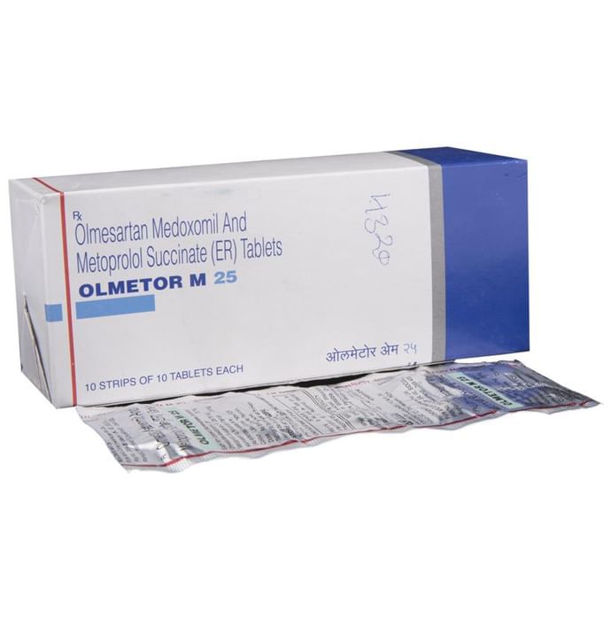 In Hypertension (high blood pressure) Olmetor M 25 Tablet is a combination medicine that contains two active ingredients, Amlodipine and Metoprolol Succinate. Both of the medicines in this combination work to lower blood pressure but in different ways. Together they help to relax blood vessels, reduce heart rate and make it easier for your heart to pump blood around your body. This lowers blood pressure. If your blood pressure is controlled you are less at risk of having a heart attack, stroke or kidney problems. The medicine must be taken regularly as prescribed to be effective. You do not usually feel any direct benefit from taking this medicine, but it works in the long term to keep you well. You should also make appropriate lifestyle changes (such as eating healthy and staying active) to maximize the effectiveness of this medicine.