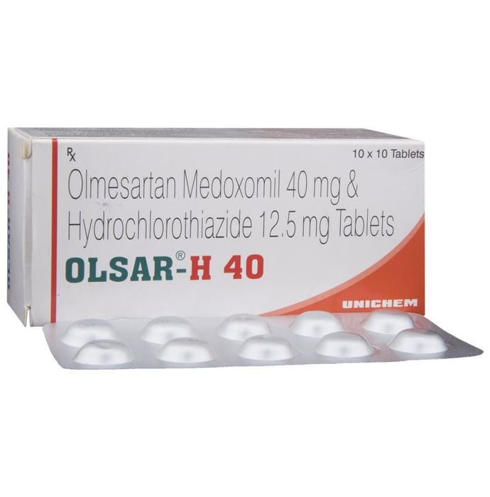 In Hypertension (high blood pressure) Olsar-H 40 Tablet is a combination of two medicines namely Olmesartan and Hydrochlorothiazide. It is generally used when one medicine alone is not controlling your blood pressure effectively. Olmesartan works by relaxing and widening your blood vessels so your blood can flow more easily. This will lower your blood pressure. Hydrochlorothiazide is known as a diuretic (water pill) which increases urine output thereby lowering blood pressure. If your blood pressure is controlled you are less at risk of having a heart attack, stroke, or kidney problems. The medicine must be taken regularly as prescribed to be effective. You do not usually feel any direct benefit from taking this medicine, but it works in the long term to keep you well.