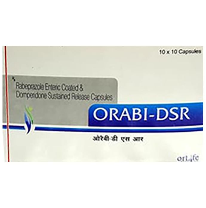 Orabi-DSR Capsule is a combination medicine used to treat gastroesophageal reflux disease (Acid reflux) and peptic ulcer disease by relieving the symptoms of acidity such as heartburn, stomach pain, or irritation. It also neutralizes the acid and promotes easy passage of gas to reduce stomach discomfort. Orabi-DSR Capsule is taken without food in a dose and duration as advised by the doctor. The dose you are given will depend on your condition and how you respond to the medicine. You should keep taking this medicine for as long as your doctor recommends. If you stop treatment too early your symptoms may come back and your condition may worsen. Let your healthcare team know about all other medications you are taking as some may affect, or be affected by this medicine. The most common side effects are diarrhea, stomach pain, dryness in mouth, headache, flatulence, and weakness. Most of these are temporary and usually resolve with time. Contact your doctor straight away if you are at all concerned about any of these side effects. This medicine may cause dizziness and sleepiness, so do not drive or do anything that requires mental focus until you know how this medicine affects you. Avoid drinking alcohol while taking this medicine as it can worsen your sleepiness. Lifestyle modifications like having cold milk and avoiding hot tea, coffee, spicy food or chocolate can help you to get better results. Before you start taking this medicine it is important to inform your doctor if you are suffering from kidney or liver disease. You should also tell your doctor if you are pregnant, planning pregnancy or breastfeeding.