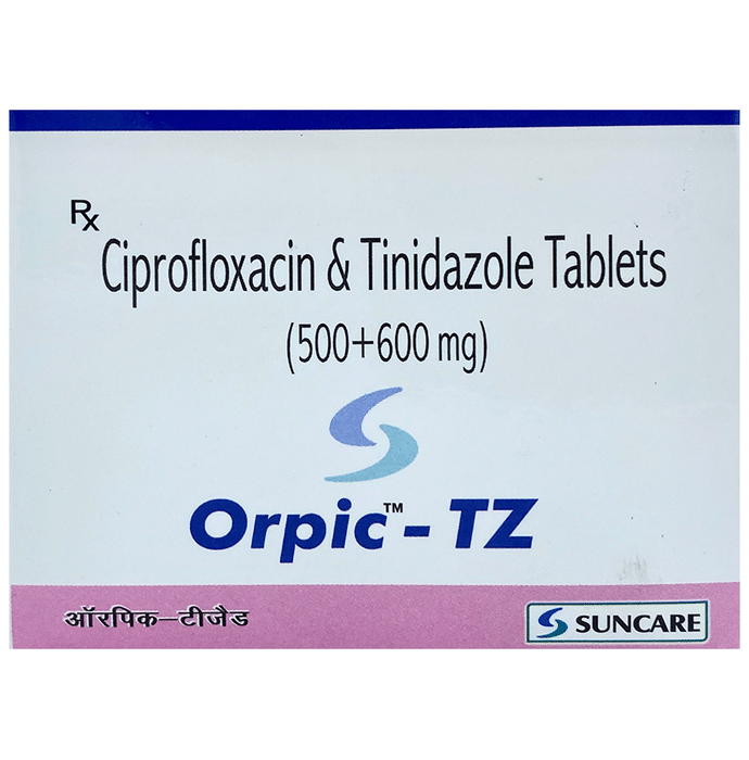 Orpic-TZ Tablet is a combination medicine that is used to treat gynecological infections, teeth and urine infections, lung infections, and abdominal infections such as acute diarrhea or dysentery. It acts against the infection-causing microorganisms to manage the infections. Orpic-TZ Tablet is a prescription medicine that is advised to be taken as suggested by the doctor. It should be taken with food, but it must be taken at a fixed time to ensure better efficacy. Do not consume more than the recommended dose, as an overdose of it may have harmful effects on your body. If you miss a dose, take it as soon as you remember. The treatment must be completed even if you feel better to ensure a complete recovery. Orpic-TZ Tablet may lead to some side effects such as nausea, vomiting, stomach pain, loss of appetite, headache, etc. To overcome any such side effects, it is advised to eat a healthy balanced diet and drink plenty of fluid. If any of the side effects get aggravated, contact your doctor immediately. If you experience any allergic reaction (rashes, itching, swelling, shortness of breath, etc.), you must consult your doctor immediately. Before taking this medicine, you should tell your doctor if you have any problems with your liver or kidneys. Also, tell your doctor if you are on any medication for any health condition. Pregnant or breastfeeding women should also consult with the doctors before taking it. Avoid drinking alcohol as it can cause excessive dizziness with this medicine. It usually does not impair your ability to drive, but you should not drive if it makes you feel sleepy or dizzy. If you are a known allergic to the medicine, you must refrain from using this medicine and consult your doctor. It is advised to take proper rest during the course of treatment for the medicine to work effectively.