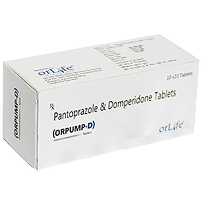 In Treatment of Gastroesophageal reflux disease (Acid reflux) Gastroesophageal reflux disease (GERD) is a chronic (long-term) condition in which there is an excess production of acid in the stomach. Orpump-D Tablet reduces the amount of acid your stomach makes and relieves the pain associated with heartburn and acid reflux. You should take it exactly as it is prescribed for it to be effective. Some simple lifestyle changes can help reduce the symptoms of GERD. Think about what foods trigger heartburn and try to avoid them; eat smaller, more frequent meals; try to lose weight if you are overweight, and try to find ways to relax. Do not eat within 3-4 hours of going to bed. In Treatment of Peptic ulcer disease Peptic ulcer disease is a condition in which painful sores or ulcers develop in the inner lining of the stomach or gut (intestine). Orpump-D Tablet reduces the amount of acid your stomach makes which prevents further damage to the ulcer as it heals naturally. You may be given other medicines along with this medicine depending on what caused the ulcer. You need to keep taking the medicine as it is prescribed for it to be effective, even if the symptoms seem to disappear.
