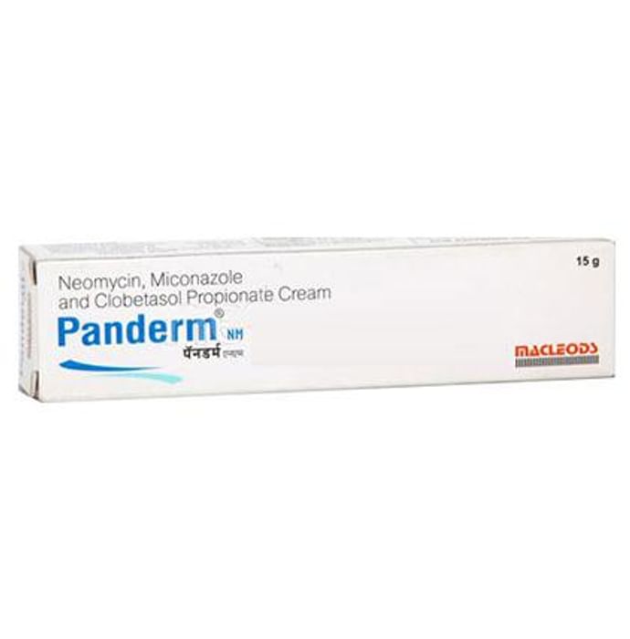 Panderm NM Cream is a combination medicine used in the treatment of various types of skin infections. It minimizes symptoms of inflammation such as redness, swelling, and itching by acting against the infection-causing microorganisms. Panderm NM Cream is only meant for external use and should be used as advised by your doctor. A thin layer of the medicine should be applied only to the affected areas of the skin with clean and dry hands. If it gets into your eyes, nose, mouth, or vagina rinse with water. It may take several days to weeks for your symptoms to improve, but you should keep using this medicine regularly. The course of the treatment should be completed to ensure better efficacy of the medicine. If your condition does not improve or gets worse, you should talk to your doctor. The most common side effect of this medicine includes itching, dryness, redness, and burning sensation at the application site. These are usually self-limiting. Serious side effects are rare. You must consult the doctor if you experience any allergic reaction (rashes, itching, swelling, shortness of breath, etc.). Before taking this medicine, it is important to tell your doctor if you are taking or have recently taken any other medicines for the same disease or other diseases. Pregnant and breastfeeding women should take this medicine with proper consultation and caution. If you are a known allergic to the medicine, you must refrain from using this medicine. You should consult the doctor about prescribing an alternative medicine for your condition.