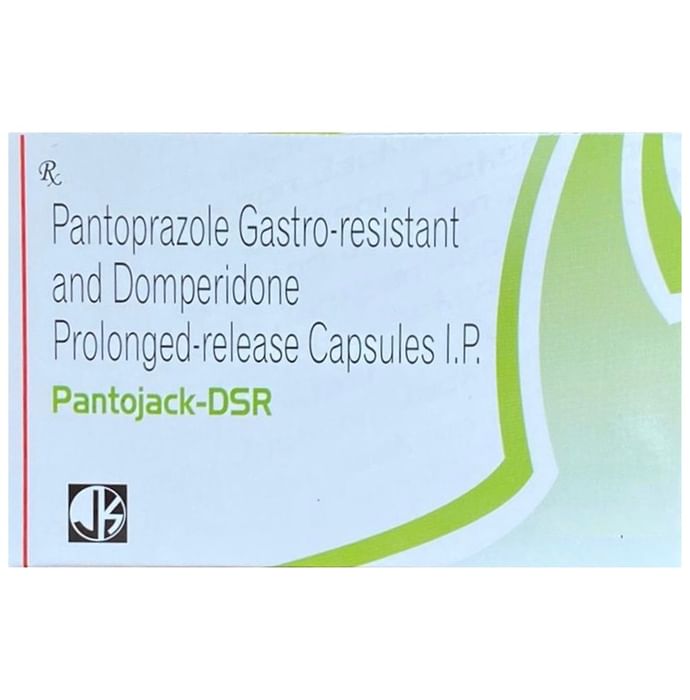 Pantojack-DSR Capsule is a prescription medicine used to treat gastroesophageal reflux disease (Acid reflux) and peptic ulcer disease by relieving the symptoms of acidity such as indigestion, heartburn, stomach pain, or irritation. Pantojack-DSR Capsule also neutralizes the acid in the stomach and promotes easy passage of gas to reduce stomach discomfort. It is taken without food in a dose and duration as advised by the doctor. The dose you are given will depend on your condition and how you respond to the medicine. You should keep taking this medicine for as long as your doctor recommends. If you stop treatment too early your symptoms may come back and your condition may worsen. Let your healthcare team know about all other medications you are taking as some may affect, or be affected by this medicine. The most common side effects are diarrhea, stomach pain, flatulence, dryness in the mouth, and headache. Most of these are temporary and usually resolve with time. Contact your doctor straight away if you are at all concerned about any of these side effects. This medicine may cause dizziness and sleepiness, so do not drive or do anything that requires mental focus until you know how this medicine affects you. Avoid drinking alcohol while taking this medicine as it can worsen your sleepiness. Lifestyle modifications like having cold milk and avoiding hot tea, coffee, spicy food, or chocolate can help you to get better results. Before you start taking this medicine it is important to inform your doctor if you are suffering from kidney or liver disease. You should also tell your doctor if you are pregnant, planning pregnancy, or breastfeeding.