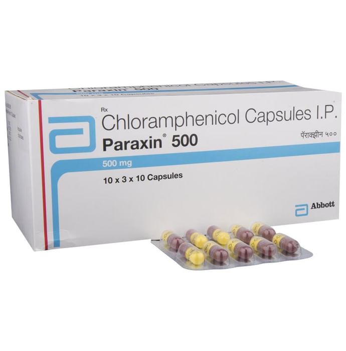 Paraxin 500 Capsule is an antibiotic that fights bacteria. It is used to treat certain types of serious infections caused by bacteria when other antibiotics cannot be used. It works by killing the bacteria that cause these problems. However, it will not treat a viral infection. Paraxin 500 Capsule may be effective even when bacteria have developed resistance to other antibiotics. It should be taken on an empty stomach. You should take it regularly at evenly spaced intervals as per the schedule prescribed by your doctor. Taking it at the same time every day will help you to remember to take it. The dose will depend on what you are being treated for, but you should always complete a full course of this antibiotic as prescribed by your doctor. Do not stop taking it until you have finished, even when you feel better. If you stop taking it early, some bacteria may survive and the infection may come back. Some people may develop side effects like vomiting, nausea, diarrhea, taste change. These side effects are usually temporary and go away during treatment as your body adjusts to the medicine. Consult your doctor if these side effects bother you or do not go away. Before starting treatment with this medicine, you should tell your doctor if you have liver or kidney problems or if you are allergic to any antibiotic. While using it, your doctor may advise some blood tests to monitor your blood cell counts. Pregnant and breastfeeding mothers should consult their doctor before using it. Avoid consuming alcohol while taking this medicine as it may cause unpleasant side effects like nausea, vomiting, sweating, anxiety, and palpitations.