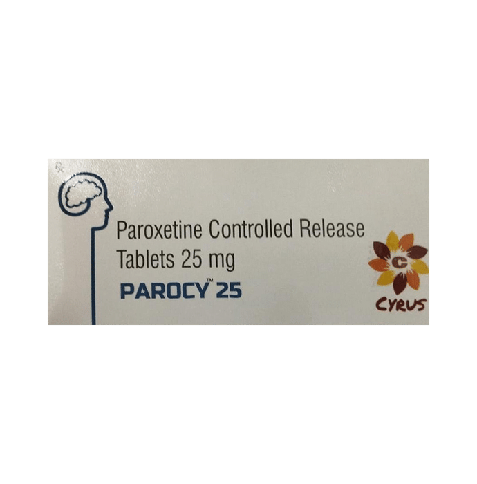 Parocy 25 Tablet CR is a type of antidepressant belonging to the selective serotonin reuptake inhibitor (SSRI) group of medicines. It is widely prescribed to treat depression and anxiety-related conditions like obsessive-compulsive disorder, and panic disorder. Parocy 25 Tablet CR helps many people to recover from depression by improving their mood and relieving anxiety and tension. It can be taken with or without food. The dose and how often you need it will be decided by your doctor so that you get the right amount to control your symptoms. Your doctor may start you on a lower dose and increase it gradually. Do not change the dose or stop taking it without talking to your doctor, even if you feel well. Doing so may make your condition worse or you may suffer from unpleasant withdrawal symptoms (anxiety, restlessness, palpitations, dizziness, sleep disturbances, etc). To get the most benefit, take this medicine regularly at the same time each day. Your doctor may advise you to take it in the morning if you have trouble sleeping. It may take a few weeks before you start feeling better. Let your doctor know if you do not see any improvement even after 4 weeks. Some common side effects of Parocy 25 Tablet CR include nausea, fatigue, dry mouth, loss of appetite, increased sweating, dizziness, nervousness, tremors, insomnia (difficulty in sleeping), and constipation. Sexual side effects like decreased sexual drive, delayed ejaculation, and erectile dysfunction may also be seen. Let your doctor know straight away if you develop any sudden worsening of mood or any thoughts about harming yourself. Before taking this medicine, you should tell your doctor if you have epilepsy (seizure disorder or fits), diabetes, liver or kidney disease, heart problems, or glaucoma. These may affect your treatment. Pregnant or breastfeeding women should also consult their doctor before taking it. Some other medicines may affect the way it works, especially other antidepressants and medicines called MAO inhibitors. Please tell your doctor about all the medicines you are taking to make sure you are safe.