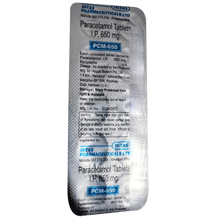 In Pain relief PCM 650mg Tablet is a common painkiller for treating aches and pains. It is widely used and rarely causes any side effects if taken properly. To get the most benefits, take it as prescribed. Do not take more or for longer than needed as that can be dangerous. In Treatment of Fever PCM 650mg Tablet is also used to reduce a high temperature (fever). It works by blocking the release of certain chemical messengers that cause fever. It may be prescribed alone or in combination with other medicines. Take it as prescribed by the doctor.
