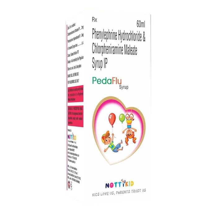 Pedaflu Syrup is a combination medicine used in the treatment of common cold symptoms. It relieves allergy symptoms such as runny nose, stuffy nose, sneezing, watery eyes and congestion or stuffiness. Pedaflu Syrup is taken with or without food in a dose and duration as advised by the doctor. The dose you are given will depend on your condition and how you respond to the medicine. You should keep taking this medicine for as long as your doctor recommends. If you stop treatment too early your symptoms may come back and your condition may worsen. Let your healthcare team know about all other medications you are taking as some may affect, or be affected by this medicine. The most common side effects are nausea, vomiting, and headache. Most of these are temporary and usually resolve with time. Contact your doctor straight away if you are at all concerned about any of these side effects. This medicine may cause dizziness and sleepiness, so do not drive or do anything that requires mental focus until you know how this medicine affects you. Avoid drinking alcohol while taking this medicine as it can worsen your sleepiness. Never support self-medication or recommend your medicine to another person. It is beneficial to have plenty of fluids while taking this medication. Before you start taking this medicine it is important to inform your doctor if you are suffering from liver disease. You should also tell your doctor if you are pregnant, planning pregnancy or breastfeeding.