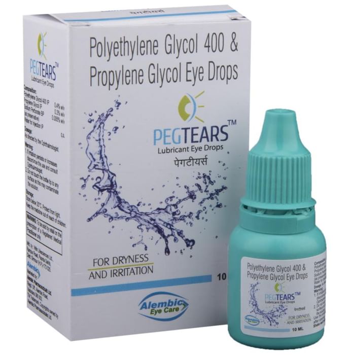 Peg Tears Eye Drop is a prescription medicine used to treat symptoms of dry eyes. It lubricates the eyes. This way it provides temporary relief from burning and discomfort caused by dry eyes. It also reduces redness and swelling of the eye. Peg Tears Eye Drop is to be used only in the affected eye in the dose and duration as advised by the doctor. Wash your hands before using this medicine. It is advised to check the label for directions before use. Do not use it too much or too little than the prescribed amount. Use it in the exact dose and duration as advised by the doctor. Use of this medicine may cause itching, irritation, and stinging sensation at the application site. These are usually temporary and resolve with time. However, if they persist or get worse, inform your doctor. In case of accidental contact with your ears, nose, or mouth, immediately rinse it with water. Inform your doctor if you have a known allergy to any of the ingredients in this medicine or if you are taking any other medication. It is advised not to drive or operate heavy machinery immediately after using this medicine as it may cause temporary blurring of vision and may affect your ability to drive.