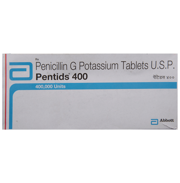 Pentids 400 Tablet is an antibiotic used to treat a variety of bacterial infections. It is effective in infections of the throat, ear, nasal sinuses, respiratory tract, skin and soft tissue, and sexually transmitted diseases like Syphilis. Pentids 400 Tablet is also used to prevent some infections such as Rheumatic fever and infection of the heart valves (bacterial endocarditis) in people with pre-existing heart disease. It is a penicillin-type of antibiotic, which mainly fights and stops the growth of the gram-positive type of bacteria. This tablet may be swallowed with or without food, but it should be used regularly at evenly spaced intervals as per the schedule prescribed by your doctor. Do not skip any doses and finish the full course of treatment even if you feel better. Stopping the medicine too early may lead to the infection returning or worsening. The total duration of treatment and precise dosage will be decided by your doctor, depending on the type of infection that you have and how well you respond to the medication. Before taking this medicine, inform your doctor if you are allergic to penicillin or any penicillin-type of medicine. Rash, vomiting, allergic reactions, nausea, and diarrhea may be seen as side effects in some patients. These are temporary and usually resolve quickly. Consult your doctor if any of these side effects persist or if your condition worsens. This medicine is generally regarded as safe to use during pregnancy if used under a doctor’s supervision.
