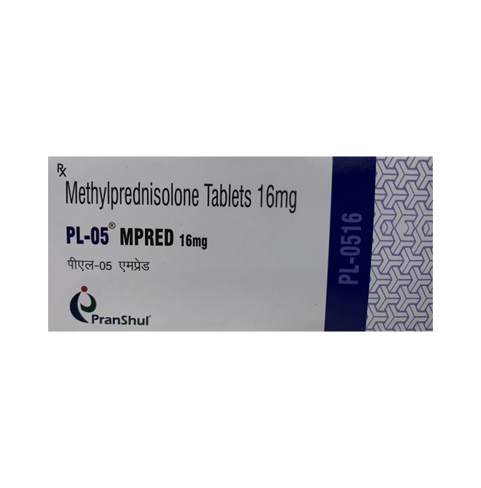 PL 05 Mpred 16mg Tablet is a medicine used to treat a wide variety of medical conditions such as severe allergic conditions, asthma, rheumatic disorder, skin and eye disorders, and systemic lupus erythematosus. It provides relief by preventing the release of substances that cause inflammation. PL 05 Mpred 16mg Tablet should be taken with food. This will prevent you from getting an upset stomach. The dose and duration will depend on what you are being treated for. You should always take the amount prescribed. Do not take a larger dose or use it more often. Keep taking it regularly even if you feel well. Some conditions will become worse if you stop using this medicine. The most common side effects of this medicine include skin thinning, increased risk of infection, reduction in bone density, weight gain, and mood changes. If these side effects bother you or do not go away, your doctor may suggest ways of preventing or reducing them. The use of this medicine may lower your ability to fight infections so avoid being near people who might pass on infections such as measles, chickenpox, or flu. Before using this medicine, you should tell your doctor if you have brittle bones (osteoporosis), mood disorders, high blood pressure, or liver disease. Also, tell your doctor if you have diabetes, this medicine may increase blood glucose levels which can cause or worsen diabetes. Many other drugs may affect, or be affected by, this medicine so let your doctor know all other medicines you are using, to make sure it is safe. You should also tell your doctor if you are pregnant, planning pregnancy or breastfeeding.
