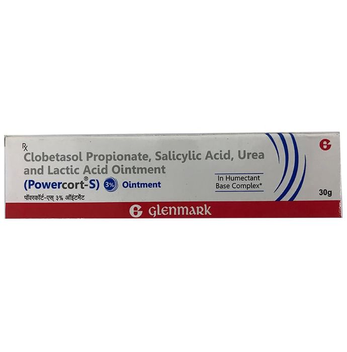 Powercort-S 3% Ointment is a prescription medicine having a combination of medicines that are used to treat eczema and psoriasis. It helps to provide relief from redness, itching and swelling. It removes dead skin cells and helps in softening the skin. Powercort-S 3% Ointment should be used in the dose and duration as advised by your doctor. Wash your hands before using this medicine. It is advised to check the label for directions before use. It is for external use only. Do not use this medicine more than the recommended dose. Inform your doctor if you have known allergies from this medicine. The common side effects of this medicine include burning, itching, irritation and redness at the application site. If these side effects or any other symptoms which you think are because of this medicine persist for a longer duration, please consult your doctor. Inform your doctor if you are pregnant or are suffering from any other disease. This medicine is safe to use in breastfeeding mothers.