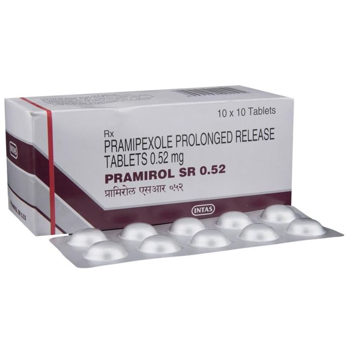 Pramirol SR 0.52 Tablet is used in the treatment of Parkinson's disease and restless leg syndrome (an urge to move the legs usually accompanied or caused by uncomfortable and unpleasant leg sensations). It helps to treat excessive shaking by slowing down the body movements. Pramirol SR 0.52 Tablet should be taken with food. However, take it at the same time each day as this helps to maintain a consistent level of medicine in the body. Take this medicine in the dose and duration as advised by your doctor and if you have missed a dose, take it as soon as you remember it. You should never skip any doses and finish the full course of treatment even if you feel better. This medication mustn't be stopped suddenly without talking to your doctor. Some common side effects of this medicine include nausea, dry mouth, fatigue, hallucinations, constipation, and peripheral edema. It also causes dizziness and sleepiness, so do not drive or do anything that requires mental focus until you know how this medicine affects you. Inform your doctor if you develop any unusual changes in mood, an abnormally high sex drive, an urge to gamble, or uncontrolled spending as these may prove very harmful.