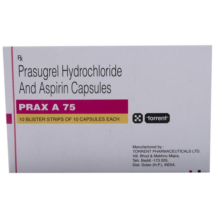 Prax A 75 Capsule is a combination of two antiplatelet medicines used to reduce the formation of harmful blood clots in blood vessels. This helps to prevent a heart attack or stroke in people with heart disease. Prax A 75 Capsule should be taken with food regularly at a fixed time each day. You should take it regularly at evenly spaced intervals as per the schedule prescribed by your doctor. Taking it at the same time every day will help you remember to take it. The dose and duration of treatment will depend on what you are being treated for. Do not stop taking it until you have finished the complete course, even when you feel better. Lifestyle changes like low-fat diet, exercise and not smoking may help this medicine to work better. Diarrhea, indigestion, and stomach pain are some common side effects of this medicine. This medicine increases your risk of bleeding, so it is important to be careful while shaving, cutting nails and using sharp objects. Usually, it is advisable to avoid alcohol intake while taking this medicine. Before taking this medicine, tell your doctor if you have any liver or kidney disease . You must tell your doctor if you are pregnant, planning pregnancy or breastfeeding. You should also let your healthcare team know all other medicines you are taking as they may affect, or be affected by this medicine.