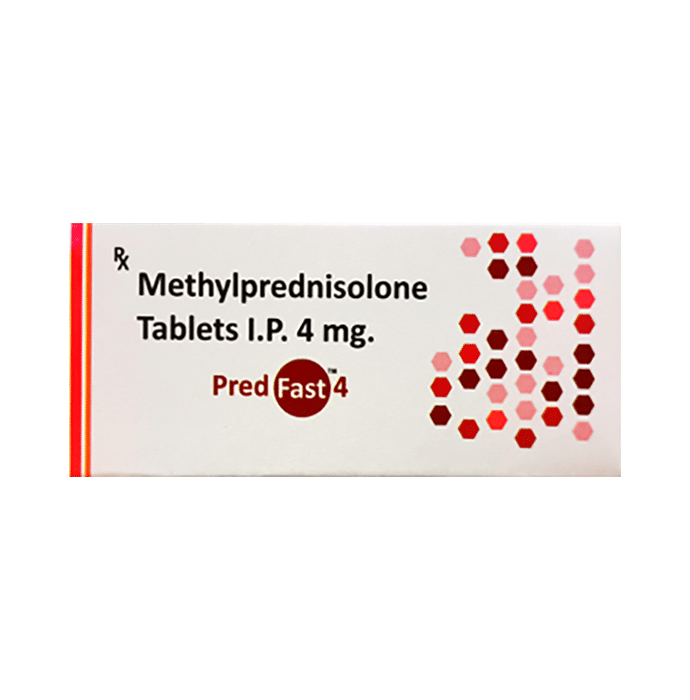 Pred Fast 4 Tablet is a medicine used to treat a wide variety of medical conditions such as severe allergic conditions, asthma, rheumatic disorder, skin and eye disorders, and systemic lupus erythematosus. It provides relief by preventing the release of substances that cause inflammation. Pred Fast 4 Tablet should be taken with food. This will prevent you from getting an upset stomach. The dose and duration will depend on what you are being treated for. You should always take the amount prescribed. Do not take a larger dose or use it more often. Keep taking it regularly even if you feel well. Some conditions will become worse if you stop using this medicine. The most common side effects of this medicine include skin thinning, increased risk of infection, reduction in bone density, weight gain, and mood changes. If these side effects bother you or do not go away, your doctor may suggest ways of preventing or reducing them. The use of this medicine may lower your ability to fight infections so avoid being near people who might pass on infections such as measles, chickenpox, or flu. Before using this medicine, you should tell your doctor if you have brittle bones (osteoporosis), mood disorders, high blood pressure, or liver disease. Also, tell your doctor if you have diabetes, this medicine may increase blood glucose levels which can cause or worsen diabetes. Many other drugs may affect, or be affected by, this medicine so let your doctor know all other medicines you are using, to make sure it is safe. You should also tell your doctor if you are pregnant, planning pregnancy or breastfeeding.