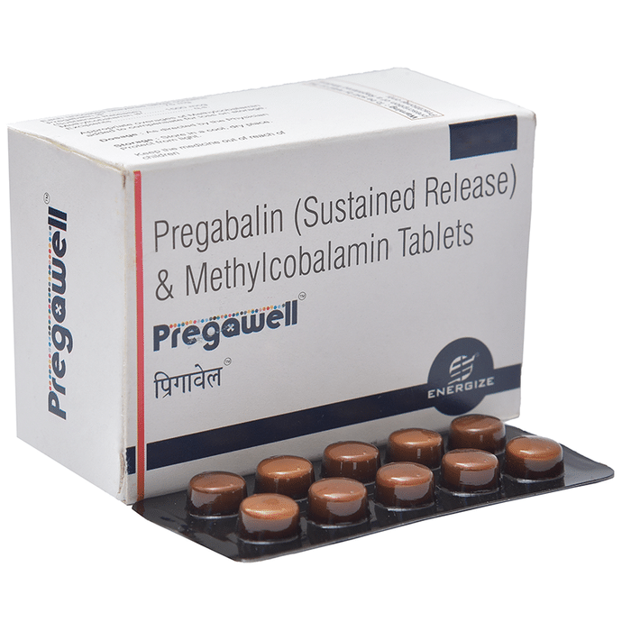 Pregawell Tablet SR is a prescription medicine used for the treatment of neuropathic pain. It decreases pain by modulating calcium channel activity of the nerve cells. This medicine also protects nerve fibers and heal damaged nerve cells. Pregawell Tablet SR is taken by mouth with or without food, preferably at bedtime. It is advised to take it at the same time each day as this helps to maintain a consistent level of medicine in the body. Take this medicine in the dose and duration advised by your doctor as this is a habit-forming medicine. If you miss a dose of this medicine, take it as soon as you remember. Finish the full course of treatment even if you feel better. It is important that this medication is not stopped suddenly without talking to the doctor. Some common side effects of this medicine include dizziness and sleepiness, so do not drive or do anything that requires mental focus until you know how this medicine affects you. The side effects are mild in nature and get improve with time. This medicine may cause weight gain and to control it, you should exercise regularly and take a balanced diet. It is important to inform your doctor if you develop any unusual changes in mood or behavior, new or worsening depression, or suicidal thoughts. Your doctor should also know about all other medicines you are taking as many of these may make this medicine less effective or change the way it works. Inform your doctor if you are pregnant, planning pregnancy, or breastfeeding.