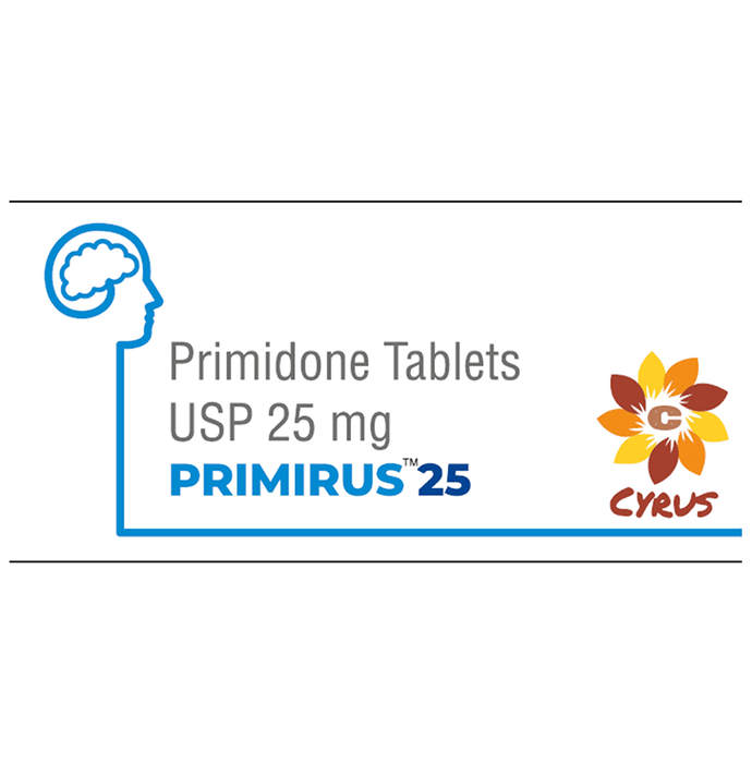 Primirus 25mg Tablet belongs to a class of medicines called barbiturates. It is used to treat and prevent epilepsy (seizures). They also have hypnotic properties. This means, they slow down the activity of the brain and can make you feel sleepy or dizzy. Primirus 25mg Tablet may be taken with or without food. However, it is advised to take it at the same time each day as this helps to maintain a consistent level of medicine in the body. Take this medicine in the dose and duration as advised by your doctor as it may be habit-forming with long-term use. If you have missed a dose, take it as soon as you remember it. Do not skip any doses and finish the full course of treatment even if you feel better. Some common side effects of this medicine include nausea, vomiting, vertigo, low energy, impaired coordination, visual disturbance, and headache. It may also cause dizziness and sleepiness, so do not drive or do anything that requires mental focus until you know how this medicine affects you. Remember to consult your doctor if you notice severe rashes, especially accompanied by fever after taking this medicine. It should be noted that long-term use of this medicine can cause pain in joints also.