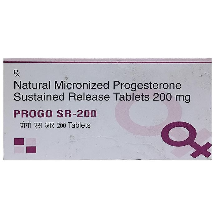 Progo SR 200 Tablet is a natural female sex hormone, progesterone. It is used to treat menstrual and pregnancy-related issues that are caused due to hormonal imbalance. Progo SR 200 Tablet is also prescribed along with estrogen as a part of hormonal replacement therapy for preventing endometrial hyperplasia (thickening of the lining of the uterus). It should be taken with food. It should be taken at the same time each day to get the most benefit. You should continue taking it for as long as your doctor has told you to, even if you feel well. The most common side effects include abdominal bloating, abdominal pain, dizziness, headache, depression, breast tenderness, hot flushes, vaginal discharge, joint paint, and urinary incontinence. Side effects are more common during the first few weeks and usually lessen as your body gets used to the medicine. You may also experience bleeding or spotting between your periods, consult with your doctor if it happens frequently. Before taking this medicine, inform your doctor if you have, or have had, breast cancer, unusual bleeding in the vagina, or liver disease. You will probably have several tests both before and during treatment to check your womb. Also, tell your doctor what other medicines you are taking as some may affect, or be affected by, this medicine. In general, it is advisable to avoid alcohol and smoking.