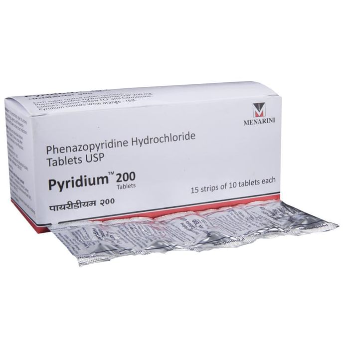 Pyridium 200 Tablet is used for symptomatic relief of pain. It helps treat burning sensation, urgency to urinate, and other discomforts arising from the urinary tract caused by infection, trauma, surgery, etc. It should be used only for symptomatic relief of pain and not as a substitute for other treatments. Pyridium 200 Tablet is best taken with food after eating a snack. This will reduce stomach upset that can be caused by the medicine. In general, the use of this medicine should not exceed more than 2 days. Consult your doctor regarding the dose and duration and follow the instructions strictly. Some common side effects seen with this medicine include headache, nausea, vomiting, diarrhea, rash, and urine discoloration. These side effects are usually temporary and go away after the treatment stops. However, if they persist or get worse, you should let your doctor know. Before starting treatment with this medicine, you should tell your doctor if you are pregnant, breastfeeding, or suffering from any liver, kidney, or heart problems. You should also let your doctor know if you are taking any other medicine for the same condition or other diseases.