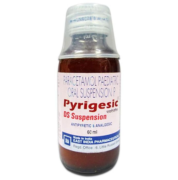 In Pain relief Pyrigesic DS Suspension is a common painkiller used to treat aches and pains. It works by blocking chemical messengers in the brain that tell us we have pain. It is effective in relieving pain caused by headache, migraine, nerve pain, toothache, sore throat, period (menstrual) pains, arthritis, and muscle aches. This medicine is very widely used and very rarely causes side effects if taken at the right dosage. Take it as it is prescribed to get the most benefit. Do not take more or for longer than needed as that can be dangerous. In general, you should take the lowest dose that works, for the shortest possible time. It is also the first choice of painkiller during pregnancy or breastfeeding. In Treatment of Fever Pyrigesic DS Suspension is also used to reduce a high temperature (fever). It works by blocking the release of certain chemical messengers that cause fever. It may be prescribed alone or in combination with another medicine. You should take it regularly as advised by your doctor.