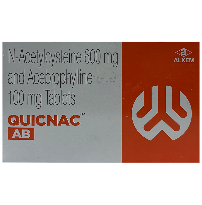 In Treatment of Chronic obstructive pulmonary disease (COPD) Quicnac AB Tablet is a combination of two medicines that helps the airways in your lungs stay open. They work by relaxing the muscles of these airways. This makes it easier for air to get in and out. This medicine also loosens thick mucus, making it easier to cough out. It will relieve symptoms such as tightness in your chest, shortness of breath, wheezing, and coughing and help you carry out your daily activities more easily. This medicine is safe and effective. It usually starts to work within a few minutes and the effects can last up to several hours. Take it as prescribed by the doctor. Do not stop using it unless you are advised to by your doctor.