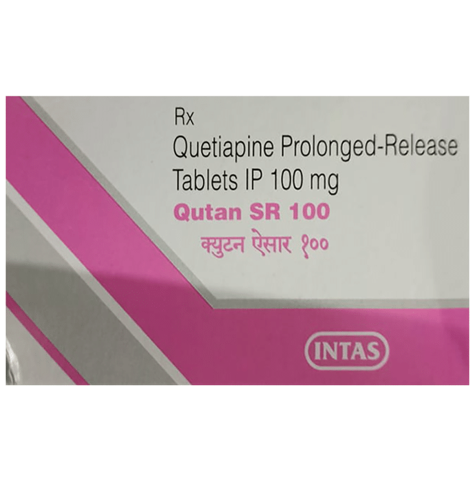 Qutan SR 100 Tablet is used in the treatment of schizophrenia (a mental disorder that can result in hallucinations or delusions and also adversely affects a person’s ability to think and behave) and mania. It is also used to treat bipolar disorders. Qutan SR 100 Tablet may be taken with or without food. However, it is advised to take it at the same time each day as this helps to maintain a consistent level of medicine in the body. Take this in the dose and duration as advised by your doctor and if you have missed a dose, take it as soon as you remember. It is important that this medication is not stopped suddenly without talking to your doctor as it may worsen your symptoms. However, discontinue this medicine immediately if you experience Neuroleptic malignant syndrome (NMS), characterized by fever, muscle rigidity, and altered consciousness or seizures. Some common side effects of this medicine include decreased hemoglobin levels in the blood, increased triglycerides level in blood, decreased cholesterol level in blood, headache, extrapyramidal symptoms, dry mouth, and withdrawal symptoms. Initially, this medicine may cause a sudden drop in blood pressure when you change positions, so it is better to rise slowly if you have been sitting or lying down. It also causes dizziness and sleepiness, so do not drive or do anything that requires mental focus until you know how this medicine affects you. This medicine may increase your weight but, modifying your lifestyle by having a healthy diet and exercising regularly can reduce this side effect. You should be cautious while using this medicine as it may increase the risk of developing diabetes, so it is better to monitor glucose regularly. Inform your doctor if you develop any unusual changes in mood or behavior, new or worsening depression, or suicidal thoughts while taking this medicine.