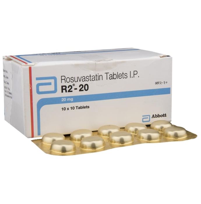 R2 20 Tablet belongs to a group of medicines called statins. It is used to lower cholesterol and reduce the risk of heart disease. Cholesterol is a fatty substance that builds up in your blood vessels and causes narrowing, which may lead to a heart attack or stroke. R2 20 Tablet is a widely prescribed medicine and is regarded as safe for long-term use. It can be taken with a meal or on an empty stomach. You can take it at any time of the day but try to take it at the same time each day. Most people with high cholesterol do not feel ill, but stopping your medicine may increase your cholesterol levels, making your condition worse and increasing your risk of heart disease and stroke. It is important to have your cholesterol levels checked regularly. This medicine is only one part of the treatment program which should also include a healthy diet, regular exercise, smoking cessation, moderation of alcohol intake, and weight reduction. You can eat normally while taking this medicine, but try to avoid foods that are high in fat. Common side effects of this medicine include muscle pain, weakness, nausea, headache, and stomach pain. These are usually mild and disappear after a short time. Consult your doctor if they persist or if you notice any yellowing of your eyes or get repeated or unexplained muscle pains. This medicine should not be used in conditions such as liver disease. Also, pregnant women and breastfeeding mothers should not take this medicine as it may harm the developing baby. Diabetic patients should monitor their blood sugar levels while taking this medicine, as it may lead to an increase in blood sugar levels.