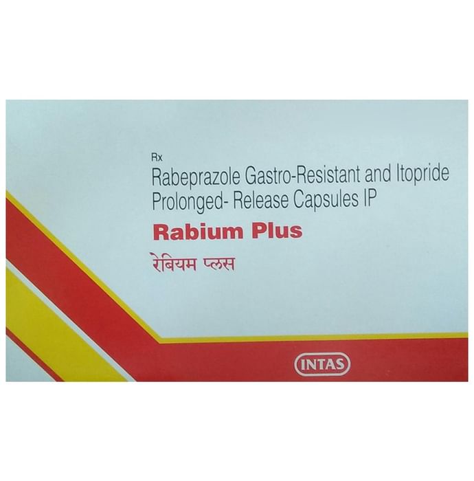 In Gastroesophageal reflux disease (Acid reflux) Gastroesophageal reflux disease (GERD) is a chronic (long-term) condition in which there is an excess production of acid in the stomach. Rabium Plus Capsule PR reduces the amount of acid your stomach makes and relieves the pain associated with heartburn and acid reflux. You should take it exactly as it is prescribed for it to be effective. Some simple lifestyle changes can help reduce the symptoms of GERD. Think about what foods trigger heartburn and try to avoid them; eat smaller, more frequent meals; try to lose weight if you are overweight and try to find ways to relax. Do not eat within 3-4 hours of going to bed. In Peptic ulcer disease Peptic ulcer disease is a condition in which painful sores or ulcers develop in the inner lining of the stomach or gut (intestine). Rabium Plus Capsule PR reduces the amount of acid your stomach makes which prevents further damage to the ulcer as it heals naturally. You may be given other medicines along with this medicine depending on what caused the ulcer. You need to keep taking the medicine as it is prescribed for it to be effective, even if the symptoms seem to disappear.