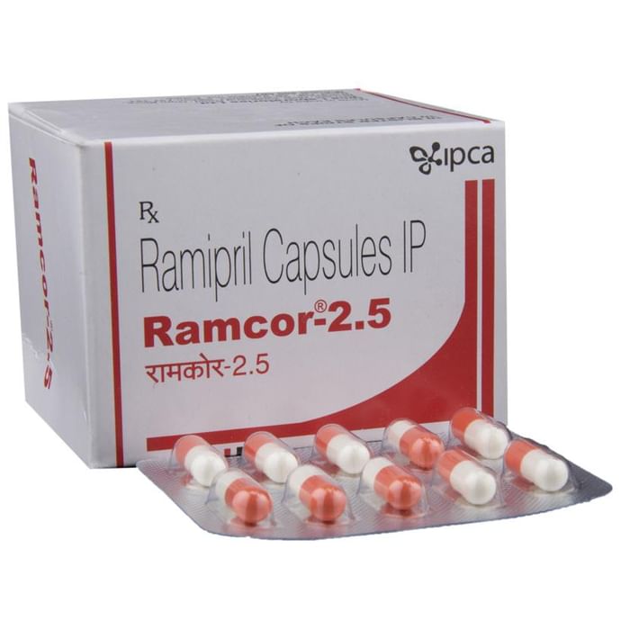 Ramcor 2.5 Capsule is widely used to treat high blood pressure and heart failure and may even be prescribed after a heart attack. It also lowers the chances of having a heart attack or stroke. Ramcor 2.5 Capsule may be prescribed either alone or in combination with other medicines. It can be taken on an empty stomach or with a meal. This medicine should preferably be taken at the same time each day to get the maximum benefit. It is important to continue taking it regularly even if you feel well or even if your blood pressure is controlled. Most people with high blood pressure do not feel any symptoms, but if you stop taking this medicine, your condition could get worse. This is a widely used medicine and is considered safe for long-term use. Making some changes in your lifestyle will also help lower your blood pressure. These may include regular exercise, losing weight, not smoking, reducing alcohol intake, and reducing the amount of salt in your diet as advised by your doctor. The most common side effects of this medicine include feeling dizzy or drowsy, headache, dry cough, fatigue, nausea, vomiting, diarrhea, stomach pain, and low blood pressure. Most of these are temporary and resolve with time. Talk to your doctor if any of the side effects bother you or do not go away. Before taking this medicine, let your doctor know if you have any kidney or liver problems. Pregnant or breastfeeding mothers should also consult their doctor before taking it. Your doctor may check your kidney function, blood pressure, and potassium levels in your blood at regular intervals while you are taking this medicine.