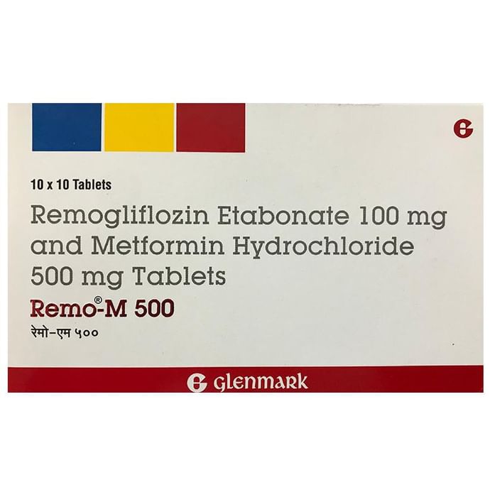 Remo-M 500 Tablet is a combination medicine that helps control blood sugar levels. This medicine is used together with diet and exercise to improve blood sugar control in adults with type 2 diabetes mellitus. It helps in proper utilisation of insulin, thereby lowering the blood sugar levels. Remo-M 500 Tablet should be taken in the dose and duration as advised by your doctor. It must be taken with or without food, preferably at the same time each day. If you miss a dose, take it as soon as possible. However, if it is almost time for your next dose, skip the missed dose and go back to your regular schedule. Do not double the dose. Overdose may lead to low blood sugar (hypoglycemia). Some people may develop hypoglycemia (low blood sugar level) when this medicine is taken along with other antidiabetic medicines, alcohol or upon skipping a meal. Monitor your blood sugar levels regularly while taking it. Other common side effects of this medicine include nausea, stomach upset, and stomach pain. However, these are temporary and usually subside on their own. Please consult your doctor if these do not resolve or bother you. Before taking this medicine, inform your doctor if you have any kidney, liver or heart problems. Pregnant or breastfeeding women should also consult their doctor before taking it. Your doctor will check your kidney function tests before starting treatment with it. Avoid excessive alcohol intake while taking it as this may increase the risk of developing some side effects.