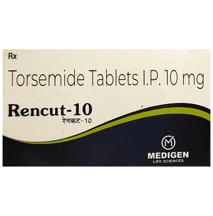 Rencut 10 Tablet belongs to a group of medicines called diuretics or water tablets. It is used to reduce the swelling (edema) caused by too much water in the body in people who have heart failure, liver disease, or kidney disease. This medicine is also used to treat high blood pressure. Rencut 10 Tablet helps your body get rid of extra water and salt through urine. It may be used alone or in combination with other medicines as per the dose advised by your doctor. It can be taken with or without food and should be taken at the same time each day. It is best to avoid taking this medicine within 4 hours of your bedtime to prevent having to get up at night to urinate. It is important to continue taking this medication even if you feel well. If you stop taking it without consulting your doctor, your condition may worsen. Lifestyle changes like reducing stress, restricting salt intake, and stopping smoking may help this medication work better. Common side effects of this medicine include headache, dizziness, dehydration, decreased blood pressure, and stomach upset. These are usually mild and disappear after a short time. Consult your doctor if they bother you or do not go away. Before taking this medicine, let your doctor know if you have any liver problems. Pregnant or breastfeeding women should also consult their doctor before taking it. Regular monitoring of kidney function and electrolyte levels is important while using this medicine. It may reduce the potassium level in your blood so your doctor may ask you to add potassium-rich foods to your diet (such as bananas, coconut water, etc.) or prescribe supplements.