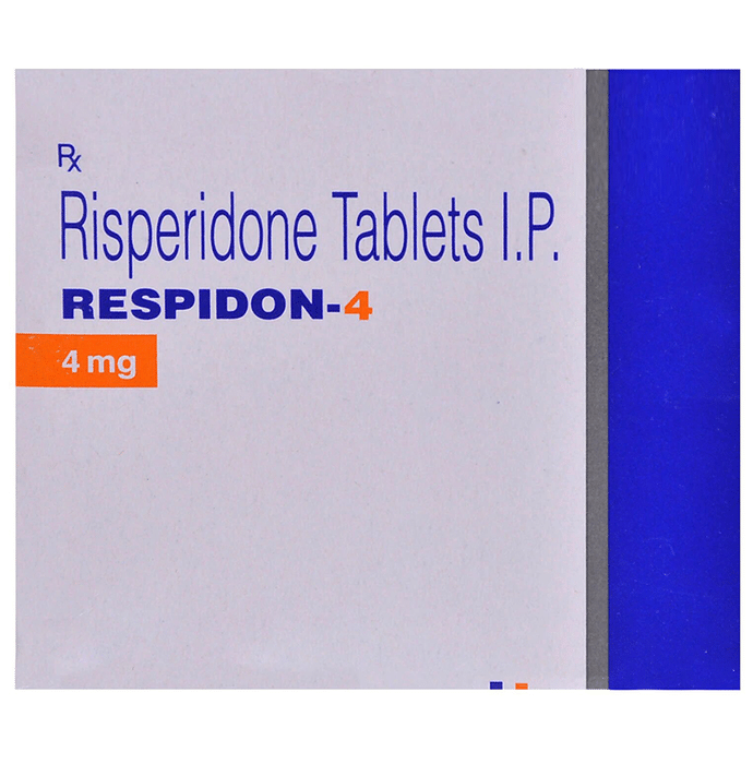 Respidon 4 Tablet is used in the treatment of schizophrenia (a mental disorder that can result in hallucinations or delusions and also adversely affects a person’s ability to think and behave) and mania. Respidon 4 Tablet is taken with or without food, preferably at night. However, it is advised to take it at the same time each day as this helps to maintain a consistent level of medicine in the body. Take this in the dose and duration as advised by your doctor and if you have missed a dose, take it as soon as you remember. It is important that this medication is not stopped suddenly without talking to your doctor as it may worsen your symptoms. However, discontinue this medicine immediately if you experience Neuroleptic malignant syndrome (NMS), characterized by fever, muscle rigidity, and altered consciousness or seizures. Some common side effects of this medicine include insomnia, sedation, somnolence, parkinsonism, and headache. Initially, this medicine may cause a sudden drop in blood pressure when you change positions, so it is better to rise slowly if you have been sitting or lying down. It also causes dizziness and sleepiness, so do not drive or do anything that requires mental focus until you know how this medicine affects you. This medicine may increase your weight but, modifying your lifestyle by having a healthy diet and exercising regularly can reduce this side effect. You should be cautious while using this medicine as it may increase the risk of developing diabetes, so it is better to monitor glucose regularly. Inform your doctor if you develop any unusual changes in mood or behavior, new or worsening depression, or suicidal thoughts while taking this medicine.