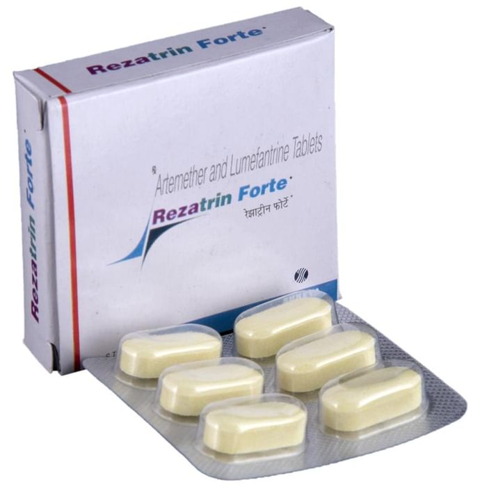Rezatrin Forte Tablet is used for the treatment of malaria in both children and adults. It contains two medicines both of which belong to a group of medicines called antimalarials. However, it is not used to prevent malaria or to treat severe/complicated malaria (when the brain, lungs, or kidneys are affected). Rezatrin Forte Tablet works by killing the malaria-causing parasites thereby preventing further spread of the infection. It should be taken with food as this will help your body better absorb the medicine. Take it in the dose and duration advised by your doctor. Do not take more than the recommended dose, as this may have harmful effects on your body. Complete the full course of treatment to make sure the infection is treated completely. Headache, loss of appetite, weakness, joint pain, or muscle pain are some of the common side effects associated with this medicine. You may also feel dizzy after taking this medicine. Inform your doctor if these persist or worsen. Before taking this medicine, you should tell your doctor about all the medicines that you may be taking for any other health conditions. Pregnant or breastfeeding women should not take this medicine unless prescribed by the doctor, as it may be harmful effects on the developing baby.