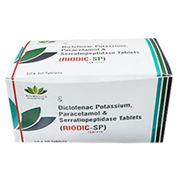 In Pain relief Riodic-SP Tablet is a combination of medicines that is used for short term relief of pain, inflammation and swelling. It inhibits release of those chemical messengers in the brain that tell us that we have pain. It effectively relieves back pain, earache, throat pain, toothache, periods pain and pain due to arthritis too. Take Riodic-SP Tablet as prescribed by the doctor to get the most benefit. Do not take more or for longer than needed as that can be dangerous. In general, you should take the lowest dose that works, for the shortest possible time. This will help you to go about your daily activities more easily and have a better, more active, quality of life.