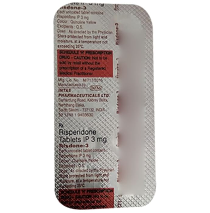 Risdone 3 Tablet is used in the treatment of schizophrenia (a mental disorder that can result in hallucinations or delusions and also adversely affects a person’s ability to think and behave) and mania. Risdone 3 Tablet is taken with or without food, preferably at night. However, it is advised to take it at the same time each day as this helps to maintain a consistent level of medicine in the body. Take this in the dose and duration as advised by your doctor and if you have missed a dose, take it as soon as you remember. It is important that this medication is not stopped suddenly without talking to your doctor as it may worsen your symptoms. However, discontinue this medicine immediately if you experience Neuroleptic malignant syndrome (NMS), characterized by fever, muscle rigidity, and altered consciousness or seizures. Some common side effects of this medicine include insomnia, sedation, somnolence, parkinsonism, and headache. Initially, this medicine may cause a sudden drop in blood pressure when you change positions, so it is better to rise slowly if you have been sitting or lying down. It also causes dizziness and sleepiness, so do not drive or do anything that requires mental focus until you know how this medicine affects you. This medicine may increase your weight but, modifying your lifestyle by having a healthy diet and exercising regularly can reduce this side effect. You should be cautious while using this medicine as it may increase the risk of developing diabetes, so it is better to monitor glucose regularly. Inform your doctor if you develop any unusual changes in mood or behavior, new or worsening depression, or suicidal thoughts while taking this medicine.