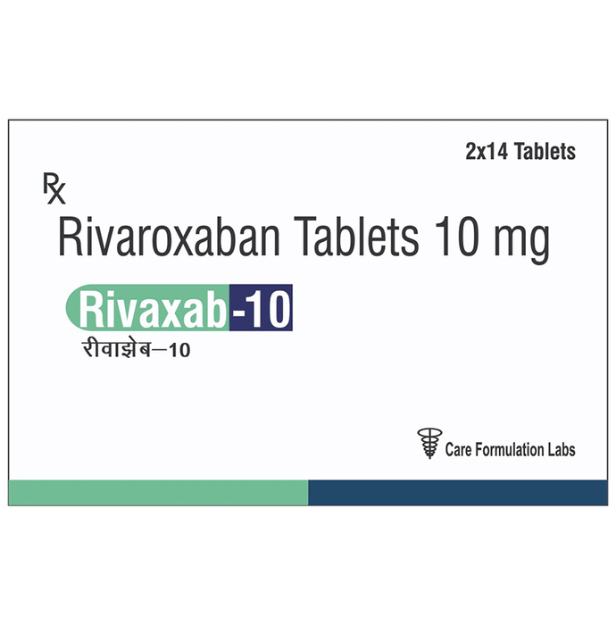 Rivaxab 10 Tablet is a medicine known as an anticoagulant or blood thinner. It helps prevent and treat blood clots. It is used to reduce the risk of stroke and heart attack. It prevents and treats clot formation in the veins of your legs, lungs, brain and heart. Rivaxab 10 Tablet is commonly used in patients with irregular heart rhythm (atrial fibrillation) to prevent clot formation. It also reduces the risk of getting clots in people who have undergone knee or hip replacement surgeries. It should be taken with food and it is best to take them at the same time each day. You may need to take this medicine for many years, even for life in some cases. Do not stop taking it or change the dose without guidance from your doctor. It could quickly put you more at risk of having a heart attack, stroke, or thrombosis (formation of a blood clot within a blood vessel). You can reduce your risk of having a blood clot by making changes to your lifestyle, such as not smoking, eating a healthy diet, getting regular exercise, and losing weight if you need to. The most common side effect of Rivaxab 10 Tablet is bleeding more easily than normal, for example, having nosebleeds or bruising. If you experience any symptoms, tell your doctor immediately. Do not take this medicine if you have severe kidney or liver problems, if you are currently bleeding or if you are taking other medicines to reduce blood clotting. You should not breastfeed while using this medicine. Unlike other anticoagulants, a regular blood test (PT-INR) is not required while taking this medicine.