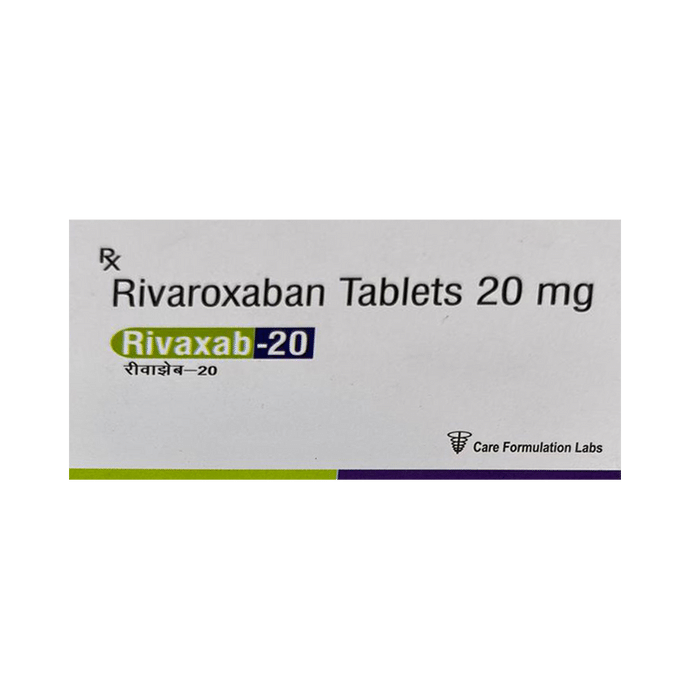 Rivaxab 20 Tablet is a medicine known as an anticoagulant or blood thinner. It helps prevent and treat blood clots. It is used to reduce the risk of stroke and heart attack. It prevents and treats clot formation in the veins of your legs, lungs, brain and heart. Rivaxab 20 Tablet is commonly used in patients with irregular heart rhythm (atrial fibrillation) to prevent clot formation. It also reduces the risk of getting clots in people who have undergone knee or hip replacement surgeries. It should be taken with food and it is best to take them at the same time each day. You may need to take this medicine for many years, even for life in some cases. Do not stop taking it or change the dose without guidance from your doctor. It could quickly put you more at risk of having a heart attack, stroke, or thrombosis (formation of a blood clot within a blood vessel). You can reduce your risk of having a blood clot by making changes to your lifestyle, such as not smoking, eating a healthy diet, getting regular exercise, and losing weight if you need to. The most common side effect of Rivaxab 20 Tablet is bleeding more easily than normal, for example, having nosebleeds or bruising. If you experience any symptoms, tell your doctor immediately. Do not take this medicine if you have severe kidney or liver problems, if you are currently bleeding or if you are taking other medicines to reduce blood clotting. You should not breastfeed while using this medicine. Unlike other anticoagulants, a regular blood test (PT-INR) is not required while taking this medicine.