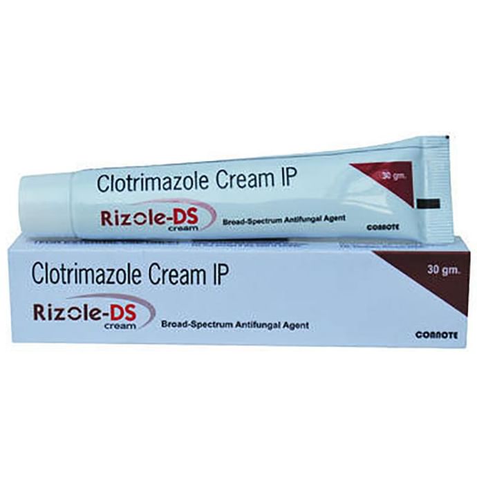 Rizole DS Cream is an antifungal medication. It is used in the treatment of fungal skin infections such as ringworm, athlete’s foot, nappy rash, sweat rash, and vaginal thrush. It kills the fungi by destroying the fungal cell membrane. Rizole DS Cream is for external use only. You should use it in the dose and duration advised by your doctor. This medicine should be used regularly to get the most benefit from it. Do not use more than you need as that may cause increased side effects. If your condition goes on for longer than four weeks or gets worse at any time, let your doctor know. The effects of this medicine can be increased by keeping the affected area clean and dry and washing hands before and after treating the infection. If you have an athlete’s foot, wash your socks or tights thoroughly and change your shoes daily if possible. Some of the common side effects include skin irritation, redness, or itching at the site of application. If the side effects bother you or do not go away, let your doctor know. Some people have a severe allergic reaction that needs urgent medical attention. Signs of this include rash, swelling of the lips, throat, or face, swallowing or breathing problems, dizziness and nausea. Get emergency help if this happens. It is not likely that other medicines you take by mouth or injection will affect the way it works but talk to your doctor before using it if you have used a similar medicine before and had an allergic reaction. This medicine should only be used if it is clearly needed during pregnancy.