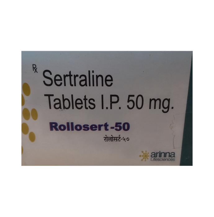 Rollosert 50 Tablet is a type of antidepressant belonging to the selective serotonin reuptake inhibitor (SSRI) group of medicines. It is prescribed for depression, anxiety-related conditions like obsessive-compulsive disorder, and panic disorder. Rollosert 50 Tablet may also be used to treat premenstrual dysphoric disorder (depression and irritability before menstrual period in women). It can be taken with or without food. The dose and how often you need it will be decided by your doctor so that you get the right amount to control your symptoms. Your doctor may start you on a lower dose and increase it gradually. Do not change the dose or stop taking it without talking to your doctor, even if you feel well. Doing so may make your condition worse or you may suffer from unpleasant withdrawal symptoms (anxiety, restlessness, palpitations, dizziness, sleep disturbances, etc). To get the most benefit, take this medicine regularly at the same time each day. Your doctor may advise you to take it in the morning if you have trouble sleeping. It may take a few weeks before you start feeling better. Let your doctor know if you do not see any improvement even after 4 weeks. Some common side effects of Rollosert 50 Tablet include nausea, indigestion, loss of appetite, increased sweating, tremors, insomnia (difficulty in sleeping), and diarrhea. Sexual side effects like decreased sexual drive, delayed ejaculation, and erectile dysfunction may also be seen. Let your doctor know straight away if you develop any sudden worsening of mood or any thoughts about harming yourself. Before taking this medicine, you should tell your doctor if you have epilepsy (seizure disorder or fits), diabetes, liver or kidney disease, heart problems, or glaucoma. These may affect your treatment. Pregnant or breastfeeding women should also consult their doctor before taking it. Some other medicines may affect the way it works, especially other antidepressants and medicines called MAO inhibitors. Please tell your doctor about all the medicines you are taking to make sure you are safe.