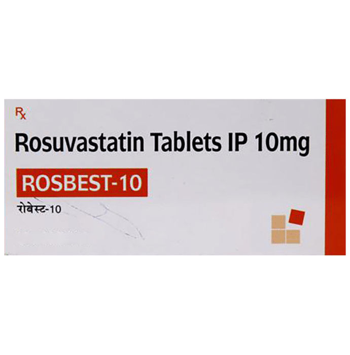Rosbest 10 Tablet belongs to a group of medicines called statins. It is used to lower cholesterol and reduce the risk of heart disease. Cholesterol is a fatty substance that builds up in your blood vessels and causes narrowing, which may lead to a heart attack or stroke. Rosbest 10 Tablet is a widely prescribed medicine and is regarded as safe for long-term use. It can be taken with a meal or on an empty stomach. You can take it at any time of the day but try to take it at the same time each day. Most people with high cholesterol do not feel ill, but stopping your medicine may increase your cholesterol levels, making your condition worse and increasing your risk of heart disease and stroke. It is important to have your cholesterol levels checked regularly. This medicine is only one part of the treatment program which should also include a healthy diet, regular exercise, smoking cessation, moderation of alcohol intake, and weight reduction. You can eat normally while taking this medicine, but try to avoid foods that are high in fat. Common side effects of this medicine include muscle pain, weakness, nausea, headache, and stomach pain. These are usually mild and disappear after a short time. Consult your doctor if they persist or if you notice any yellowing of your eyes or get repeated or unexplained muscle pains. This medicine should not be used in conditions such as liver disease. Also, pregnant women and breastfeeding mothers should not take this medicine as it may harm the developing baby. Diabetic patients should monitor their blood sugar levels while taking this medicine, as it may lead to an increase in blood sugar levels.