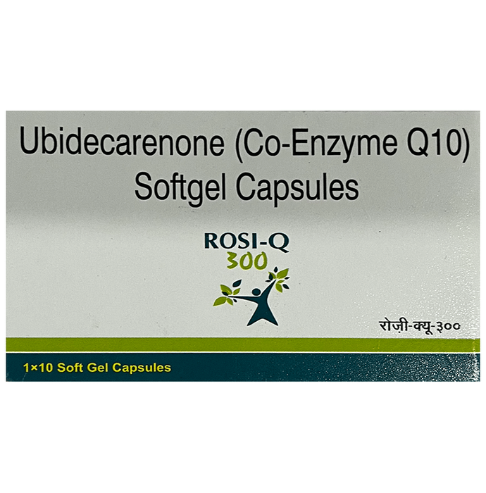 In Treatment of Nutritional deficiencies Rosi-Q 300 Soft Gelatin Capsule is a nutritional supplement that is used with other medicines in the treatment of many long term diseases. It helps in boosting body energy levels and speedy recovery. It has antioxidants that reduce the harmful effects of problems related to the heart, liver or muscles. However, consult your doctor before taking it to get maximum benefit.