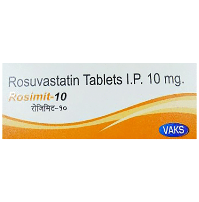 Rosimit 10 Tablet belongs to a group of medicines called statins. It is used to lower cholesterol and reduce the risk of heart disease. Cholesterol is a fatty substance that builds up in your blood vessels and causes narrowing, which may lead to a heart attack or stroke. Rosimit 10 Tablet is a widely prescribed medicine and is regarded as safe for long-term use. It can be taken with a meal or on an empty stomach. You can take it at any time of the day but try to take it at the same time each day. Most people with high cholesterol do not feel ill, but stopping your medicine may increase your cholesterol levels, making your condition worse and increasing your risk of heart disease and stroke. It is important to have your cholesterol levels checked regularly. This medicine is only one part of the treatment program which should also include a healthy diet, regular exercise, smoking cessation, moderation of alcohol intake, and weight reduction. You can eat normally while taking this medicine, but try to avoid foods that are high in fat. Common side effects of this medicine include muscle pain, weakness, nausea, headache, and stomach pain. These are usually mild and disappear after a short time. Consult your doctor if they persist or if you notice any yellowing of your eyes or get repeated or unexplained muscle pains. This medicine should not be used in conditions such as liver disease. Also, pregnant women and breastfeeding mothers should not take this medicine as it may harm the developing baby. Diabetic patients should monitor their blood sugar levels while taking this medicine, as it may lead to an increase in blood sugar levels.