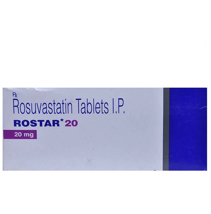 Rostar 20 Tablet belongs to a group of medicines called statins. It is used to lower cholesterol and reduce the risk of heart disease. Cholesterol is a fatty substance that builds up in your blood vessels and causes narrowing, which may lead to a heart attack or stroke. Rostar 20 Tablet is a widely prescribed medicine and is regarded as safe for long-term use. It can be taken with a meal or on an empty stomach. You can take it at any time of the day but try to take it at the same time each day. Most people with high cholesterol do not feel ill, but stopping your medicine may increase your cholesterol levels, making your condition worse and increasing your risk of heart disease and stroke. It is important to have your cholesterol levels checked regularly. This medicine is only one part of the treatment program which should also include a healthy diet, regular exercise, smoking cessation, moderation of alcohol intake, and weight reduction. You can eat normally while taking this medicine, but try to avoid foods that are high in fat. Common side effects of this medicine include muscle pain, weakness, nausea, headache, and stomach pain. These are usually mild and disappear after a short time. Consult your doctor if they persist or if you notice any yellowing of your eyes or get repeated or unexplained muscle pains. This medicine should not be used in conditions such as liver disease. Also, pregnant women and breastfeeding mothers should not take this medicine as it may harm the developing baby. Diabetic patients should monitor their blood sugar levels while taking this medicine, as it may lead to an increase in blood sugar levels.