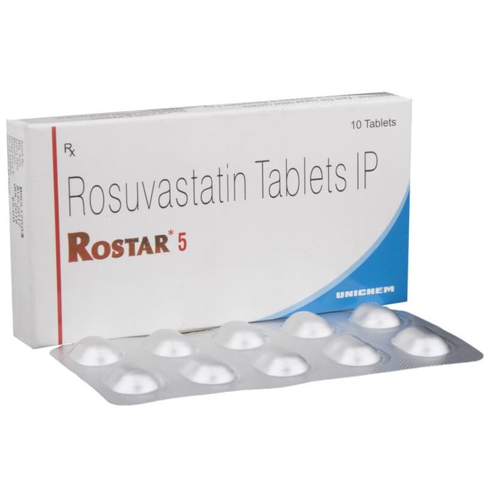 Rostar 5 Tablet belongs to a group of medicines called statins. It is used to lower cholesterol and reduce the risk of heart disease. Cholesterol is a fatty substance that builds up in your blood vessels and causes narrowing, which may lead to a heart attack or stroke. Rostar 5 Tablet is a widely prescribed medicine and is regarded as safe for long-term use. It can be taken with a meal or on an empty stomach. You can take it at any time of the day but try to take it at the same time each day. Most people with high cholesterol do not feel ill, but stopping your medicine may increase your cholesterol levels, making your condition worse and increasing your risk of heart disease and stroke. It is important to have your cholesterol levels checked regularly. This medicine is only one part of the treatment program which should also include a healthy diet, regular exercise, smoking cessation, moderation of alcohol intake, and weight reduction. You can eat normally while taking this medicine, but try to avoid foods that are high in fat. Common side effects of this medicine include muscle pain, weakness, nausea, headache, and stomach pain. These are usually mild and disappear after a short time. Consult your doctor if they persist or if you notice any yellowing of your eyes or get repeated or unexplained muscle pains. This medicine should not be used in conditions such as liver disease. Also, pregnant women and breastfeeding mothers should not take this medicine as it may harm the developing baby. Diabetic patients should monitor their blood sugar levels while taking this medicine, as it may lead to an increase in blood sugar levels.