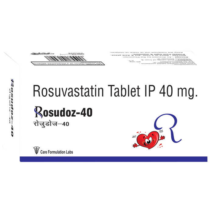 Rosudoz 40 Tablet belongs to a group of medicines called statins. It is used to lower cholesterol and reduce the risk of heart disease. Cholesterol is a fatty substance that builds up in your blood vessels and causes narrowing, which may lead to a heart attack or stroke. Rosudoz 40 Tablet is a widely prescribed medicine and is regarded as safe for long-term use. It can be taken with a meal or on an empty stomach. You can take it at any time of the day but try to take it at the same time each day. Most people with high cholesterol do not feel ill, but stopping your medicine may increase your cholesterol levels, making your condition worse and increasing your risk of heart disease and stroke. It is important to have your cholesterol levels checked regularly. This medicine is only one part of the treatment program which should also include a healthy diet, regular exercise, smoking cessation, moderation of alcohol intake, and weight reduction. You can eat normally while taking this medicine, but try to avoid foods that are high in fat. Common side effects of this medicine include muscle pain, weakness, nausea, headache, and stomach pain. These are usually mild and disappear after a short time. Consult your doctor if they persist or if you notice any yellowing of your eyes or get repeated or unexplained muscle pains. This medicine should not be used in conditions such as liver disease. Also, pregnant women and breastfeeding mothers should not take this medicine as it may harm the developing baby. Diabetic patients should monitor their blood sugar levels while taking this medicine, as it may lead to an increase in blood sugar levels.