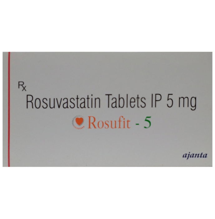 In Treatment of High cholesterol Rosufit 5 Tablet belongs to a group of medicines called statins. It works by reducing the amount of “bad” cholesterol (LDL) and raising the amount of “good” cholesterol (HDL) in your blood. Lowering the amount of cholesterol reduces the chances of heart diseases and helps you remain healthier for longer. Take it regularly and make appropriate lifestyle changes (such as eating healthy and staying active) to maximize the effectiveness of this medicine. Keep taking it even if you feel well. In Prevention of heart attack and stroke High levels of cholesterol can cause your blood vessels to narrow (atherosclerosis) and put you at risk of having a stroke or heart disease. Lowering the amount of this fat reduces the chances of this happening and helps you remain healthier for longer. Keep taking this medicine even if you feel well.