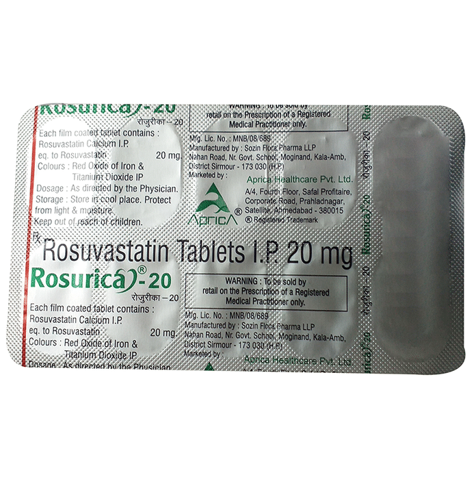In Treatment of High cholesterol Rosurica 20 Tablet belongs to a group of medicines called statins. It works by reducing the amount of “bad” cholesterol (LDL) and raising the amount of “good” cholesterol (HDL) in your blood. Lowering the amount of cholesterol reduces the chances of heart diseases and helps you remain healthier for longer. Take it regularly and make appropriate lifestyle changes (such as eating healthy and staying active) to maximize the effectiveness of this medicine. Keep taking it even if you feel well. In Prevention of heart attack and stroke High levels of cholesterol can cause your blood vessels to narrow (atherosclerosis) and put you at risk of having a stroke or heart disease. Lowering the amount of this fat reduces the chances of this happening and helps you remain healthier for longer. Keep taking this medicine even if you feel well.