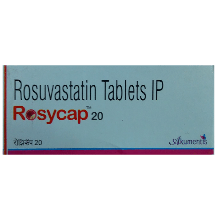 Rosycap 20 Tablet belongs to a group of medicines called statins. It is used to lower cholesterol and reduce the risk of heart disease. Cholesterol is a fatty substance that builds up in your blood vessels and causes narrowing, which may lead to a heart attack or stroke. Rosycap 20 Tablet is a widely prescribed medicine and is regarded as safe for long-term use. It can be taken with a meal or on an empty stomach. You can take it at any time of the day but try to take it at the same time each day. Most people with high cholesterol do not feel ill, but stopping your medicine may increase your cholesterol levels, making your condition worse and increasing your risk of heart disease and stroke. It is important to have your cholesterol levels checked regularly. This medicine is only one part of the treatment program which should also include a healthy diet, regular exercise, smoking cessation, moderation of alcohol intake, and weight reduction. You can eat normally while taking this medicine, but try to avoid foods that are high in fat. Common side effects of this medicine include muscle pain, weakness, nausea, headache, and stomach pain. These are usually mild and disappear after a short time. Consult your doctor if they persist or if you notice any yellowing of your eyes or get repeated or unexplained muscle pains. This medicine should not be used in conditions such as liver disease. Also, pregnant women and breastfeeding mothers should not take this medicine as it may harm the developing baby. Diabetic patients should monitor their blood sugar levels while taking this medicine, as it may lead to an increase in blood sugar levels.