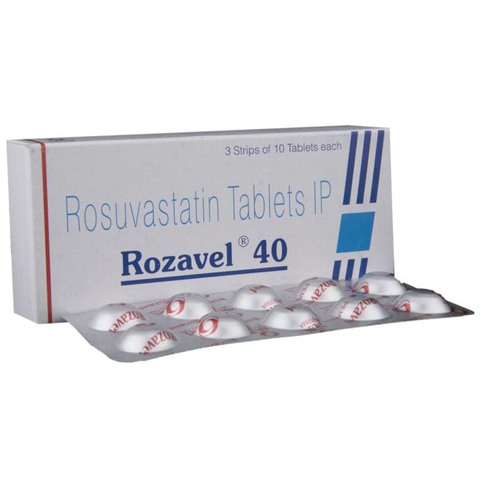 Rozavel 40 Tablet belongs to a group of medicines called statins. It is used to lower cholesterol and reduce the risk of heart disease. Cholesterol is a fatty substance that builds up in your blood vessels and causes narrowing, which may lead to a heart attack or stroke. Rozavel 40 Tablet is a widely prescribed medicine and is regarded as safe for long-term use. It can be taken with a meal or on an empty stomach. You can take it at any time of the day but try to take it at the same time each day. Most people with high cholesterol do not feel ill, but stopping your medicine may increase your cholesterol levels, making your condition worse and increasing your risk of heart disease and stroke. It is important to have your cholesterol levels checked regularly. This medicine is only one part of the treatment program which should also include a healthy diet, regular exercise, smoking cessation, moderation of alcohol intake, and weight reduction. You can eat normally while taking this medicine, but try to avoid foods that are high in fat. Common side effects of this medicine include muscle pain, weakness, nausea, headache, and stomach pain. These are usually mild and disappear after a short time. Consult your doctor if they persist or if you notice any yellowing of your eyes or get repeated or unexplained muscle pains. This medicine should not be used in conditions such as liver disease. Also, pregnant women and breastfeeding mothers should not take this medicine as it may harm the developing baby. Diabetic patients should monitor their blood sugar levels while taking this medicine, as it may lead to an increase in blood sugar levels.