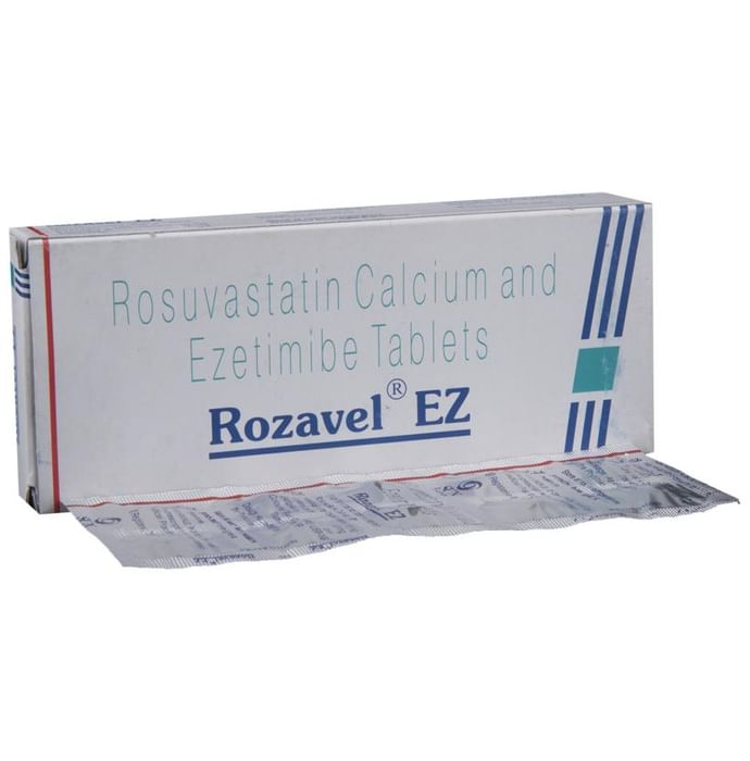 Rozavel EZ Tablet is a medicine used to treat high cholesterol. This is a combination medicine that reduces "bad" cholesterol (LDL) and triglycerides (fats) levels. It also helps to reduce risk of future heart attack and stroke. Rozavel EZ Tablet can be taken with or without food. You should take it regularly at evenly spaced intervals as per the schedule prescribed by your doctor. Taking it at the same time every day will help you remember to take it. The dose and duration of treatment will depend on what you are being treated for. Do not stop taking it until you have finished the complete course, even when you feel better. You can help this medicine work better by making a few changes to your lifestyle such as keeping active, stopping smoking, eating a healthy low-fat diet and exercise regularly. Headache, weakness, muscle pain and back pain are some common side effects of this medicine. These are usually mild but let your doctor know if they bother you or last more than a few days. Let your doctor know if you notice yellowing of skin or eyes, unusually dark urine or dark stools as it might be symptoms of liver damage. You may be asked for regular monitoring of blood sugar level, and liver function while taking this medicine. Before taking this medicine, let your doctor know if you have any kidney or liver problems or high blood pressure. Pregnant or breastfeeding women should also consult their doctor before taking it. You should also let your healthcare team know all other medicines you are taking as they may affect, or be affected by this medicine.